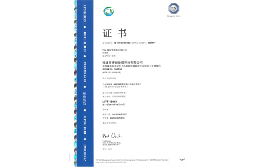 IATF 16949:2016 汽车质量管理体系证书 2024-03-22 常青新能源 兹证明:福建常青新能源科技有限公司(福建省龙岩市上杭县蛟洋镇蛟洋工业园区工业路36号)的质量管理体系适用于:三元前驱体(镍钴锰氢氧化物)的设计和生产,已经 NQA 根据标准 IATF 16949:2016 审核和注册