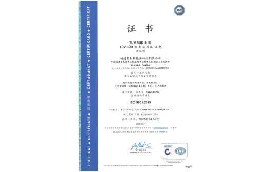 ISO9001质量管理体系证书 2025-06-27 常青新能源 兹证明:福建常青新能源科技有限公司(中国福建省龙岩市上杭县蛟洋镇姣洋工业园区工业路36号,邮政编码:364204,统一社会信用代码/组织机构代码:91350823MA325D2F2G),在以下适用范围建立和实施了质量管理体系:废旧锂离子电池回收、再生利用;三元前驱体(镍钻锰氢氧化物)研发、生产和服务。通过审核,报告号:7484289760,证明该体系满足IS0 9001:2015的要求